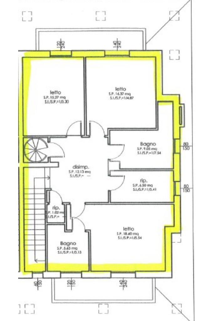 Passando al primo piano, accedendovi dalla comoda scala, troviamo la zona notte con disimpegno composta da: 2 camere matrimoniali, camera singola, 2 bagni e ripostiglio