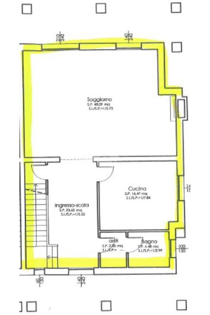 La soluzione si compone di ingresso al piano terra su ampio soggiorno con affaccio sul portico esterno, cucina abitabile, bagno.
