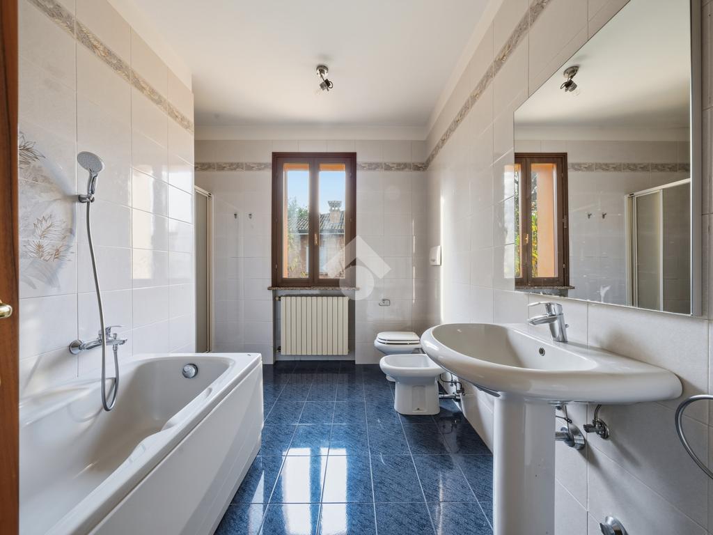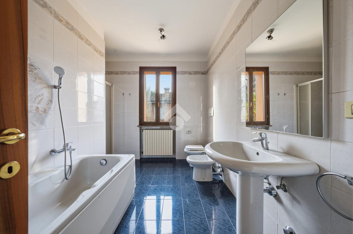 Completano la proprietà un'ampia taverna con camino, cantina, ulteriore bagno, zona lavanderia e un comodo garage doppio con accesso dal cancello privato.