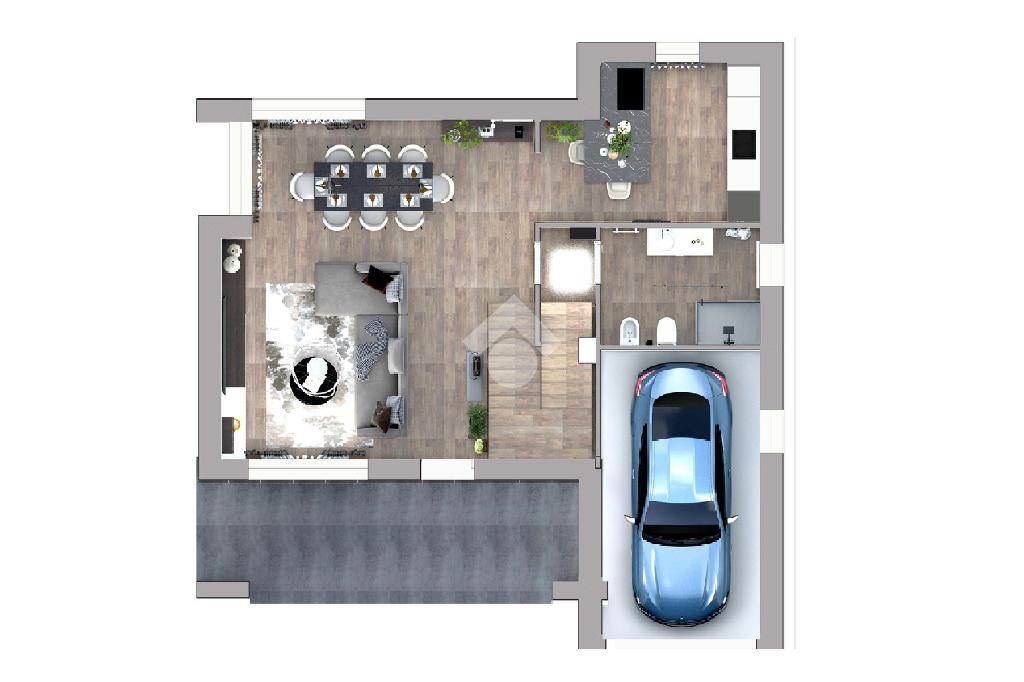 La metratura esterna ci da la possibilità di mettere una piscina e un porticato.