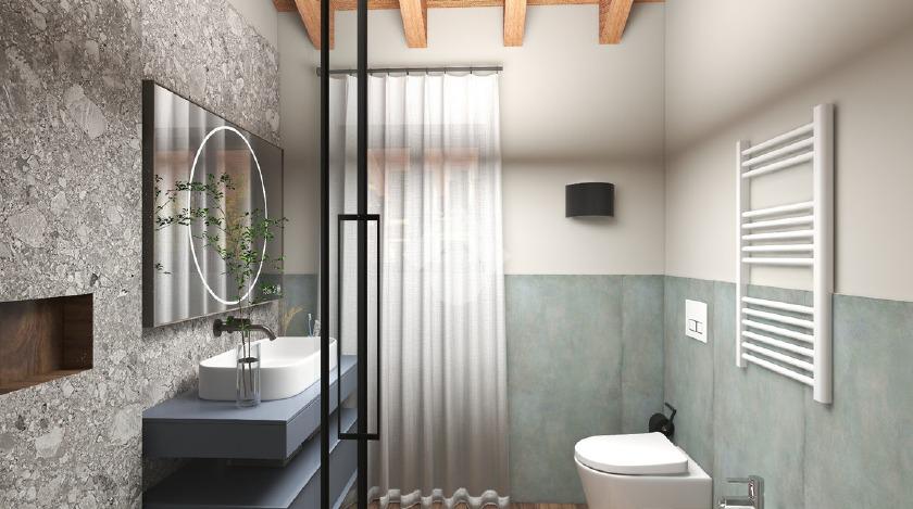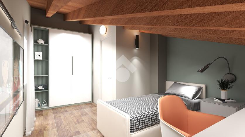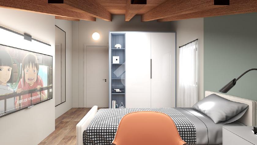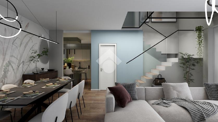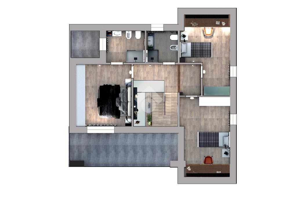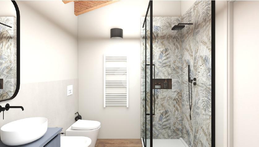 Al piano terra troviamo un ampio e luminoso salotto open space con cucina abitabile, bagno e autorimessa, al piano superiore salendo le scale, disimpegno vivibile che porta alla zona notte con un bellissimo tetto a vista in legno, camera matrimoniale con terrazzo e bagno con balcone, due camere singole e ulteriore bagno.