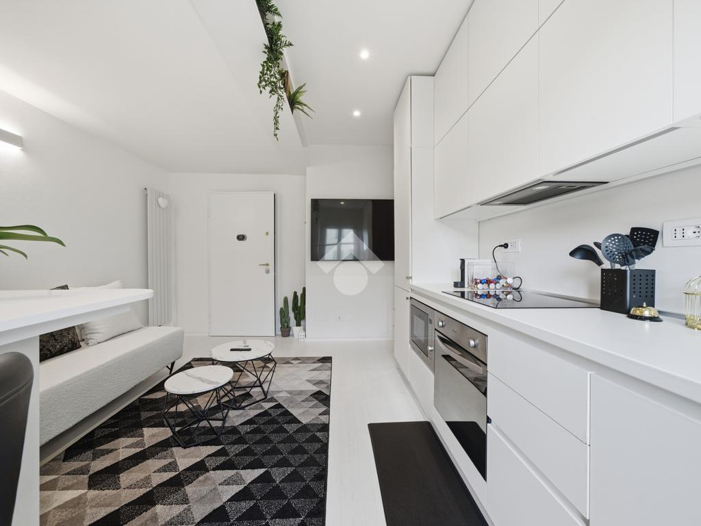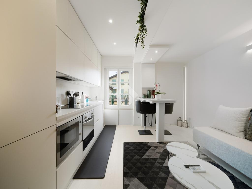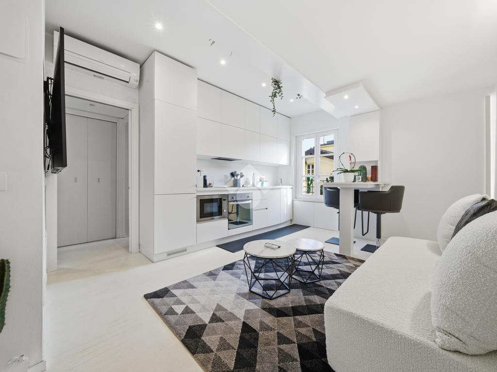 L’appartamento è composto da un luminoso soggiorno con cucina a vista, una camera da letto matrimoniale, spaziosa e accogliente ed infine da un piccolo ripostiglio adibito a lavanderia. Completa la struttura il bagno, creato con il solo utilizzo di materiali ricercati e di alta qualità.